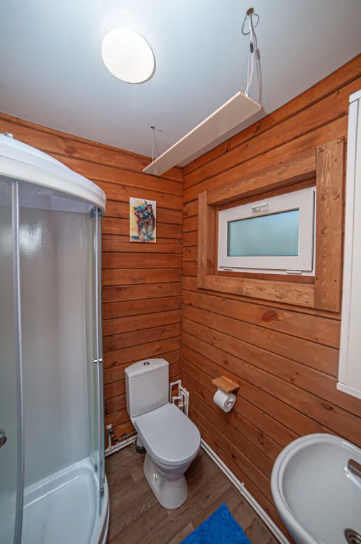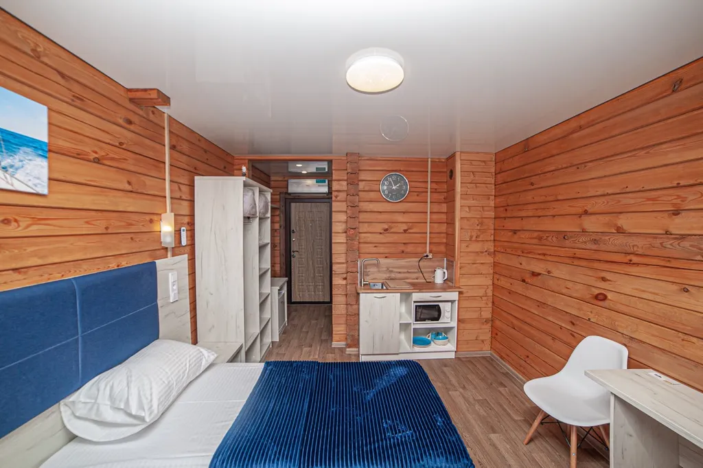 Инверторный кондиционер и инфракрасный обогреватель в санузле хорошо согревают, и гостям комфортно в студиях круглый год.