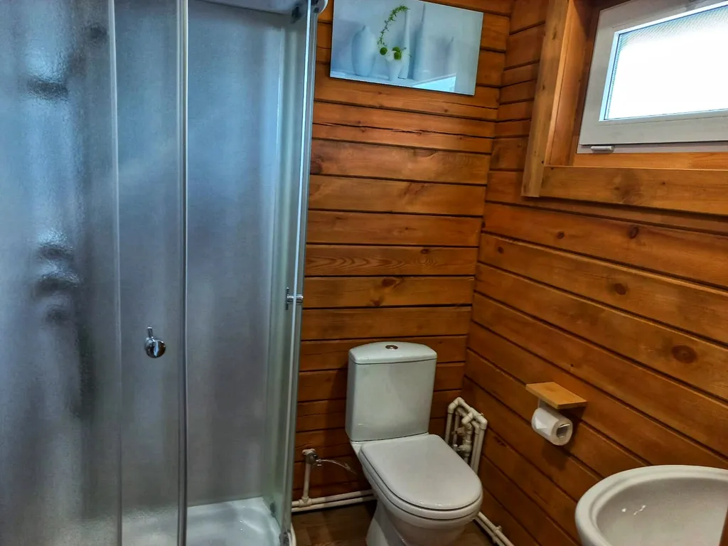 Инверторный кондиционер и инфракрасный обогреватель в санузле хорошо согревают, и гостям комфортно в студиях круглый год.