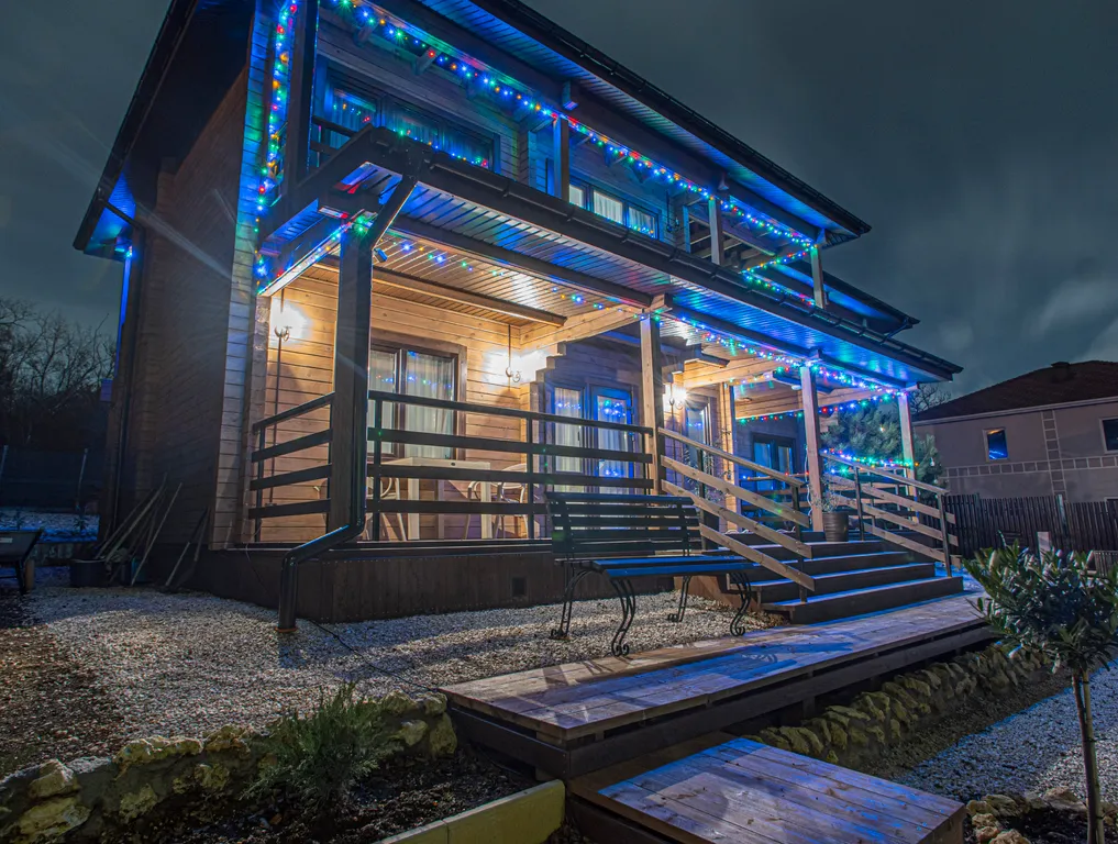 Ухоженная территория, с большой парковкой, качелями, мангальной площадкой и южными растениями, закрыта от посторонних.