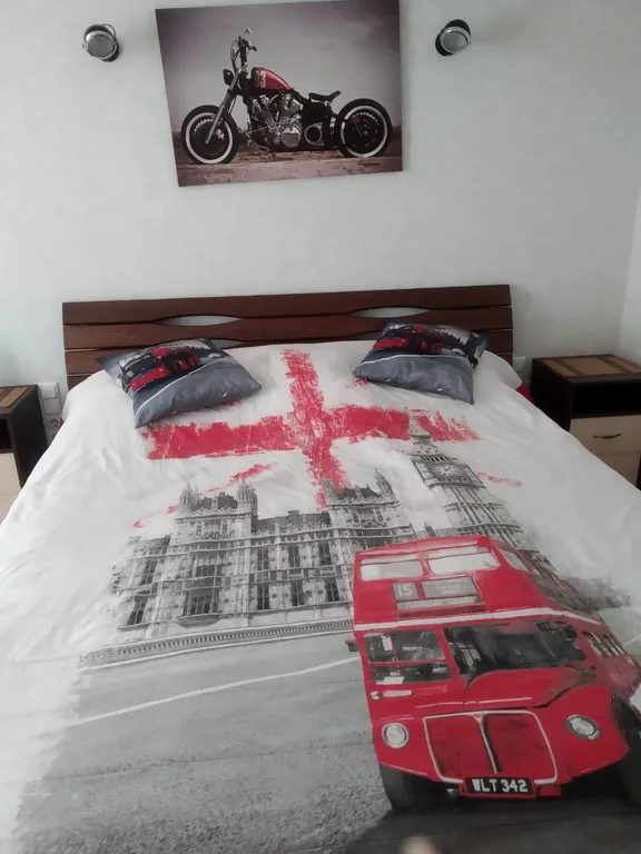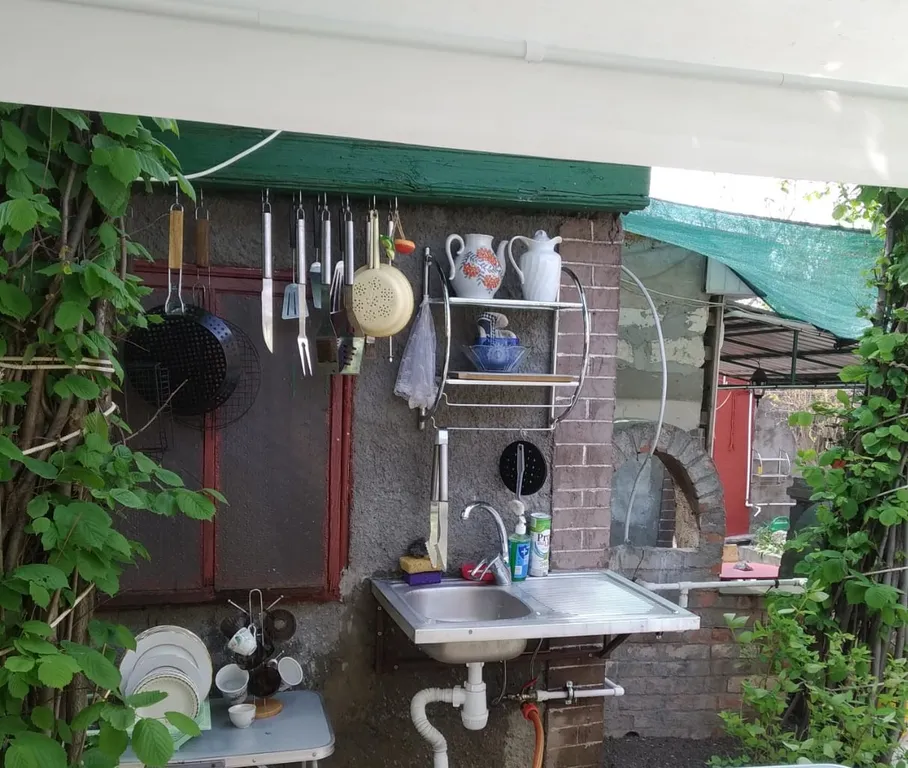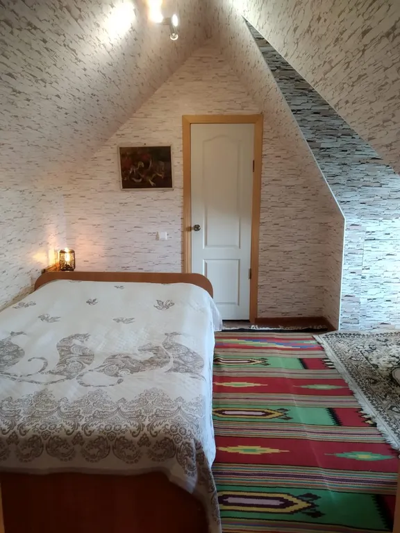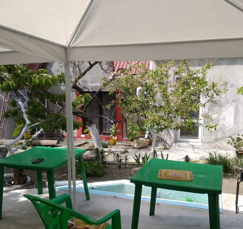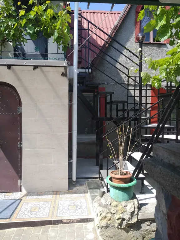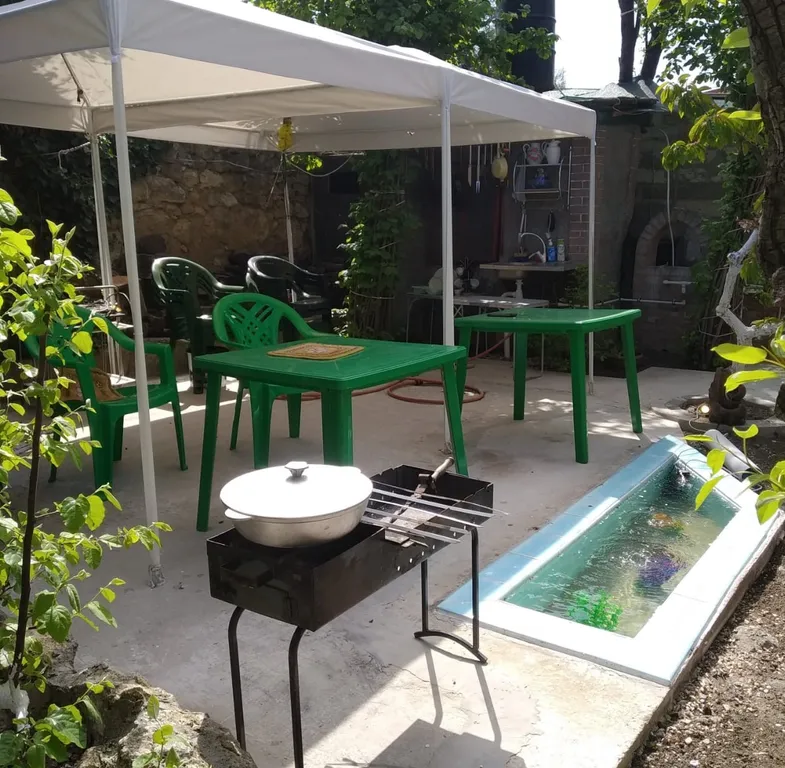 На втором этаже (отдельный вход) две комнаты, санузел. В одной из комнат ортопедическая двуспальная кровать, во второй – раскладной диван. Кондиционер. Есть дополнительно кроватка для ребенка до 3-х лет. Просторный внутренний двор, зона барбекю, летний душ, летняя кухня, парковка для трёх автомобилей.
